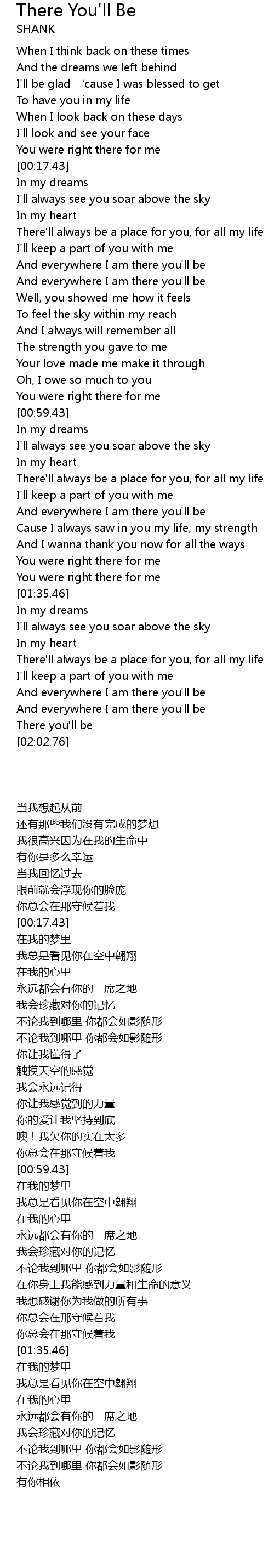 | [01:41.87] | There'll always be a place for you, for all my life |