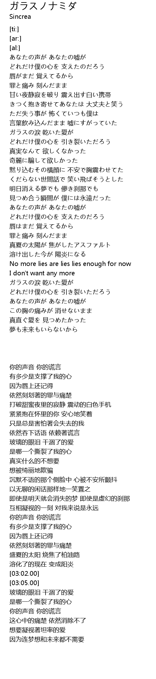 | [03:02.00] | No more lies are lies lies enough for now |