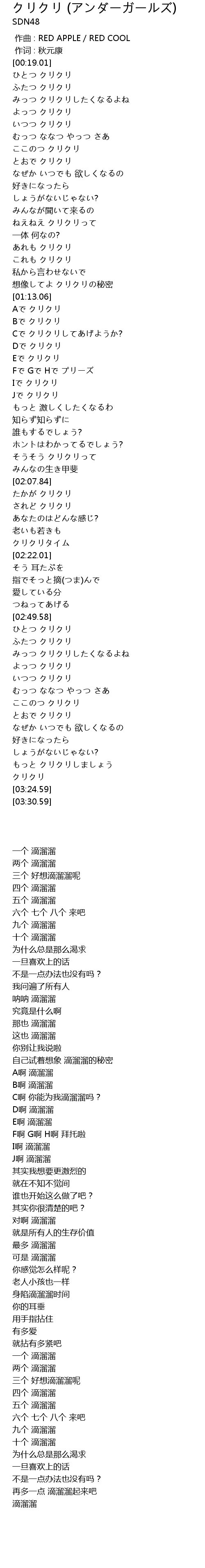| [01:07.19] | 想像してよ クリクリの秘密 |