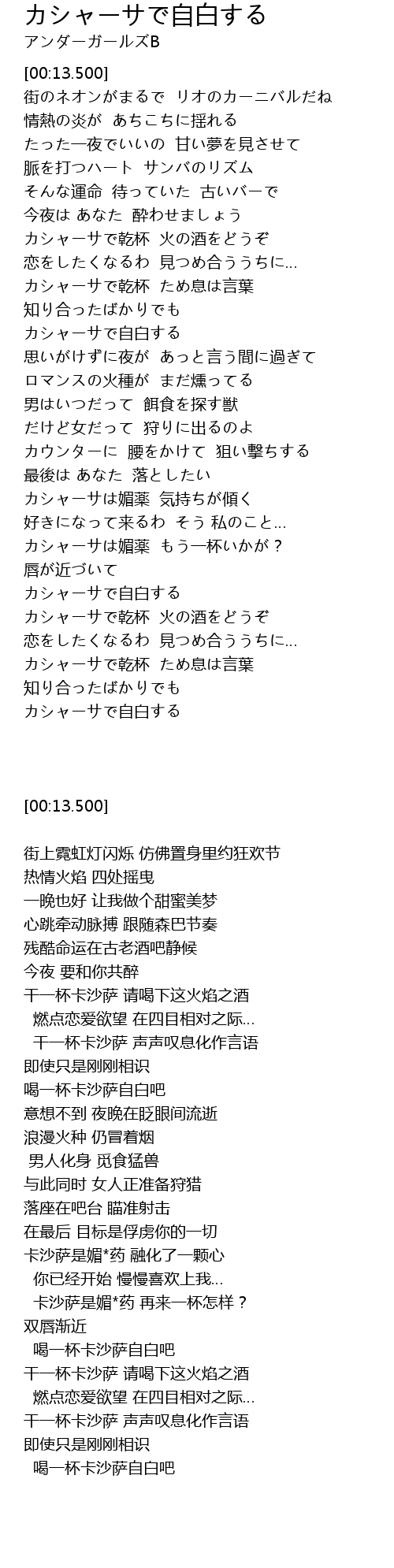 | [03:45.010] | カシャーサで乾杯 ため息は言葉 |