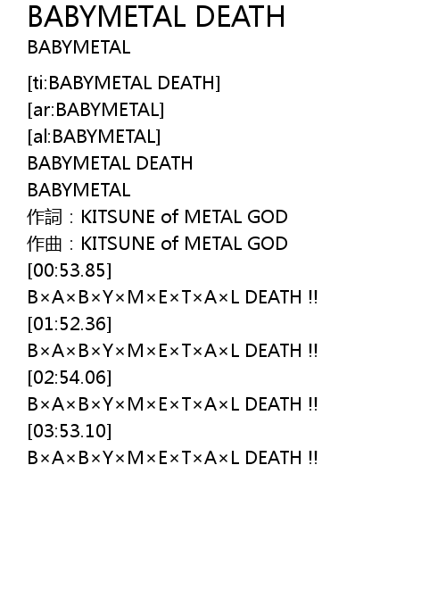 | [04:00.24] | B A B Y M E T A L DEATH !! |