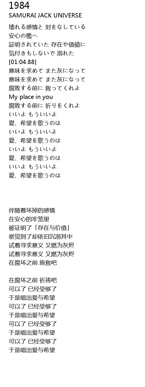 | [02:08.84] | My place in you |