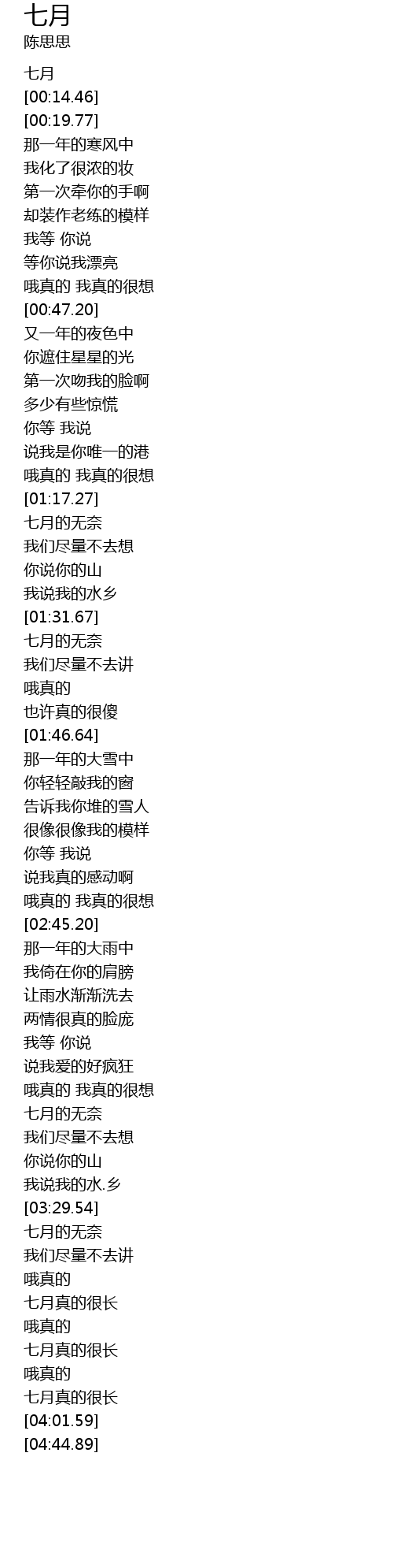 | [03:49.34] | qī yuè zhēn de hěn zhǎng |