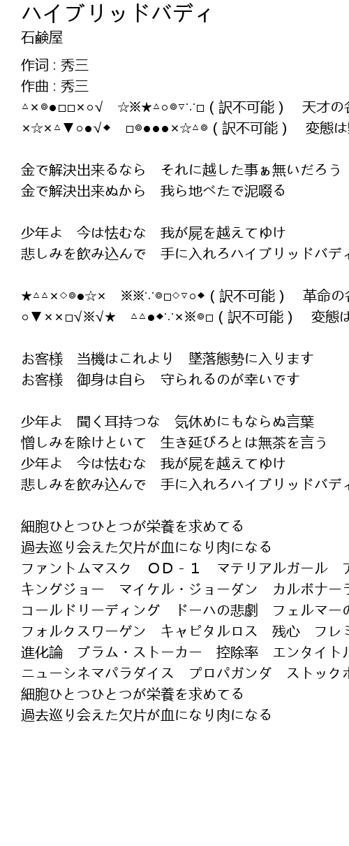 | ★△△×◇◎●☆× ※※∵◎□◇▽○◆(訳不可能) 革命の名の下に | |