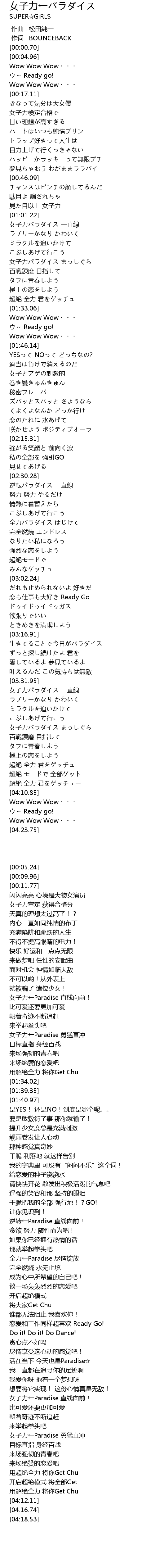 | [03:32.26] | 女子力パラダイス 一直線 |