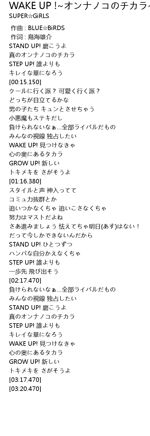 | [03:02.410] | WAKE UP! 見つけなきゃ |