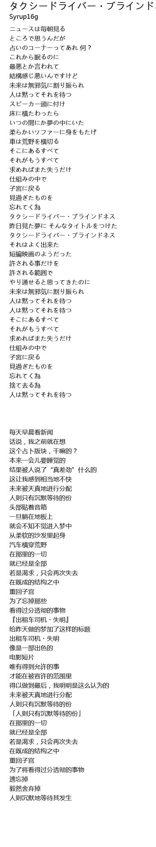 | [02:53.000] | タクシードライバー・ブラインドネス |