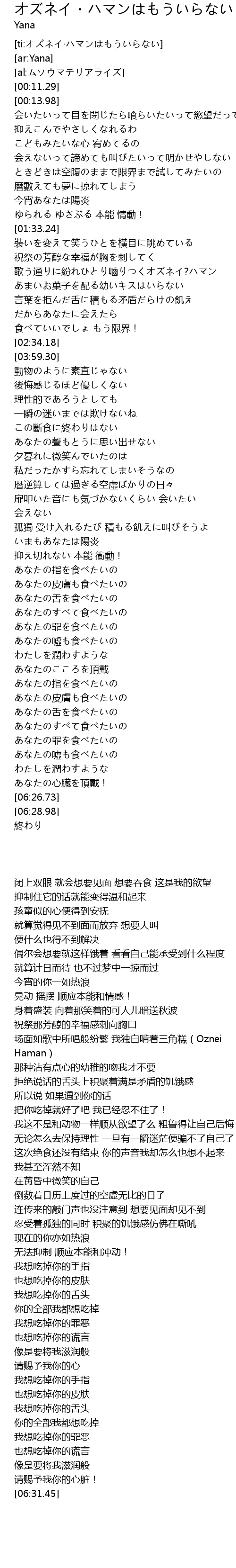 | [06:04.94] | あなたのすべて食べたいの |