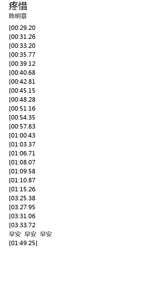 | [03:37.13][03:25.38][03:13.78][03:01.86][02:50.14][01:30.87][01:19.52] | 早安 |