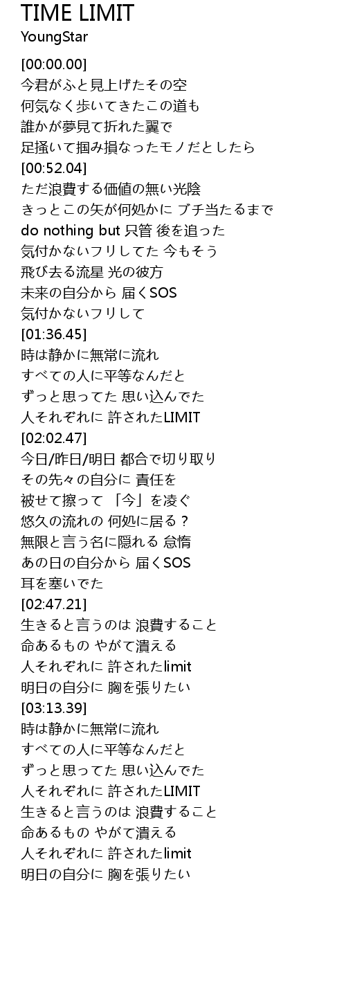 | [03:39.39] | 人それぞれに 許されたLIMIT |
