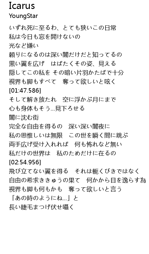 | [03:21.940] | 飛び立てない翼を得る それは軛くびきではなく |