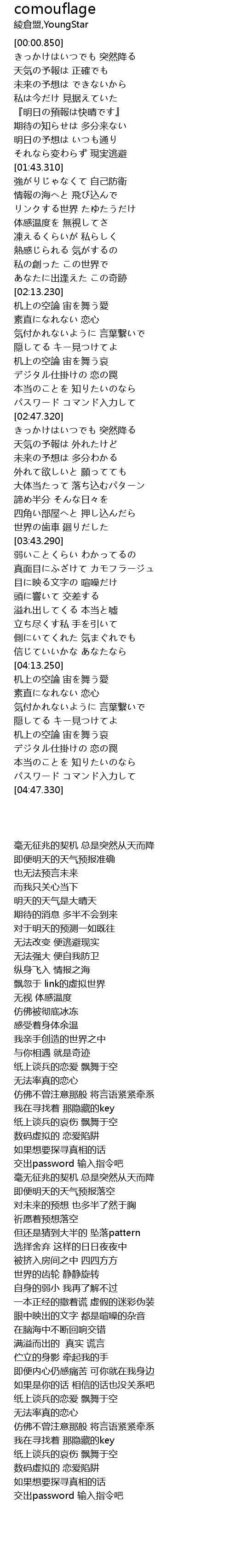 | [03:47.370] | 真面目にふざけて カモフラージュ |