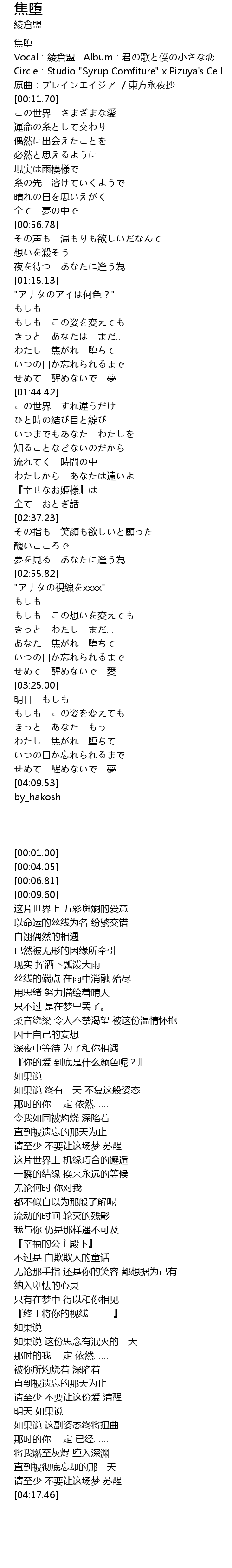 | [01:30.11] | わたし 焦がれ 堕ちて |