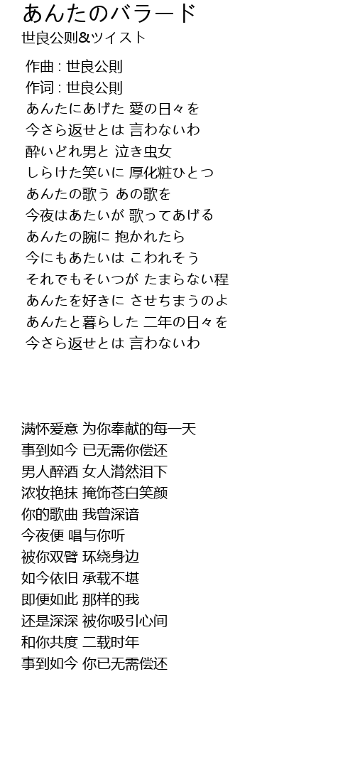 | [00:20.849] | あんたにあげた 愛の日々を |