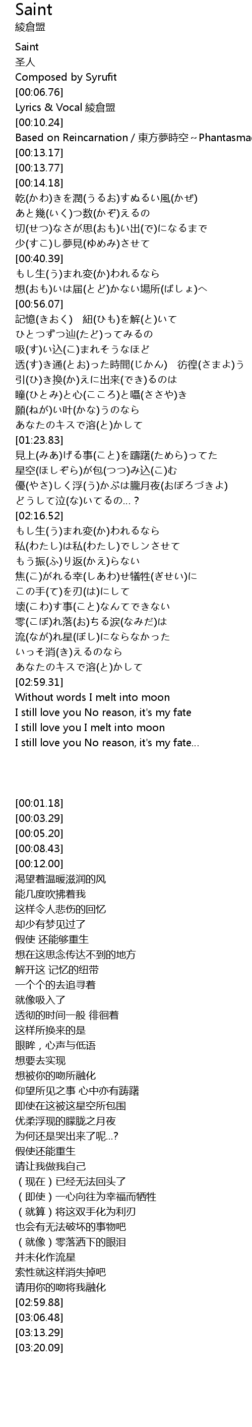 | [00:01.18] | Saint |