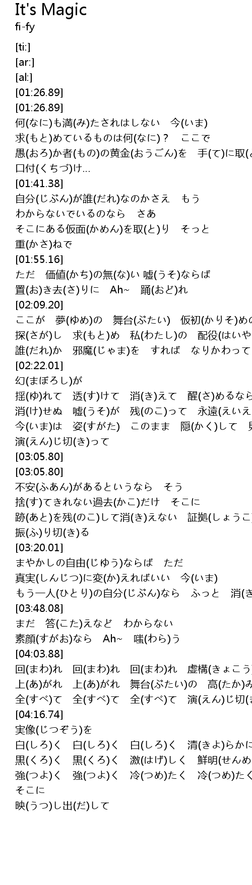 | [04:03.88] | 回(まわ)れ 回(まわ)れ 回(まわ)れ 虚構(きょこう)と |