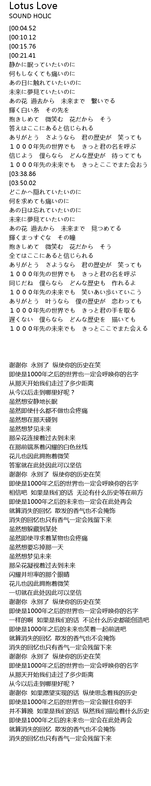 | [04:29.85][00:10.12] | 1000年先の世界でも きっと君の名を呼ぶ |