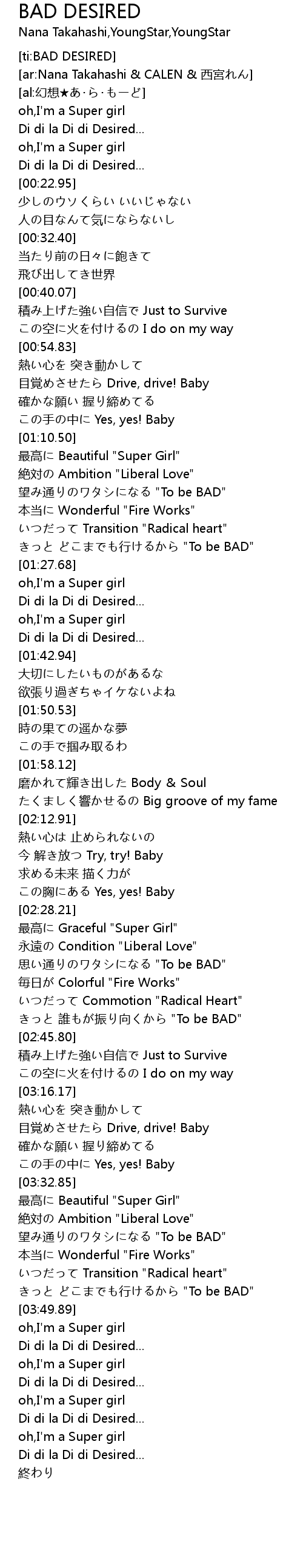 | [03:37.37] | 望み通りのワタシになる "To be BAD" |