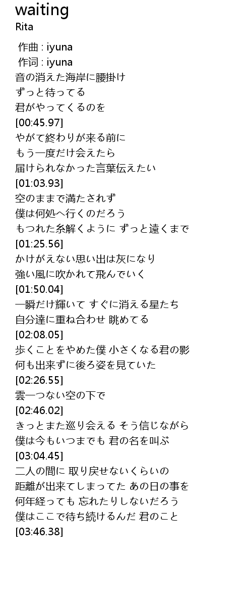 | [00:41.16] | 君がやってくるのを |