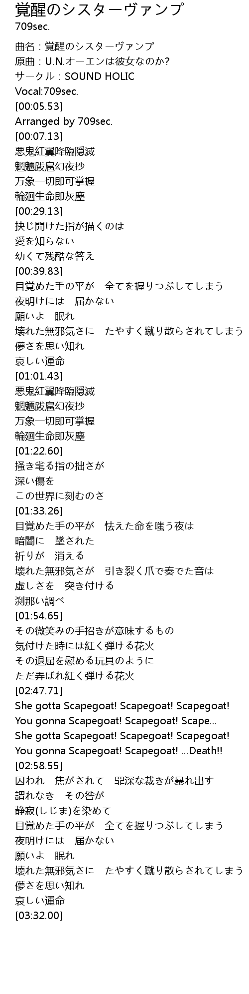 | [02:56.11] | You gonna Scapegoat! Scapegoat! ... Death!! |