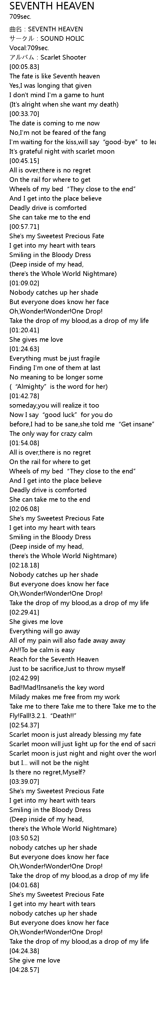 | [00:01.26] | qū míng: SEVENTH HEAVEN |