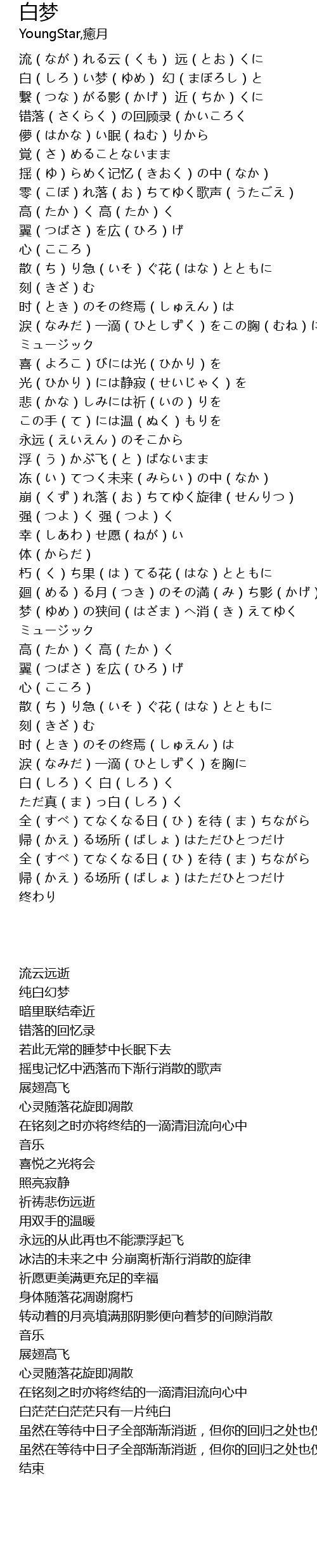 | [04:04.670] | 白(しろ)く 白(しろ)く ただ真(ま)っ白(しろ)く |