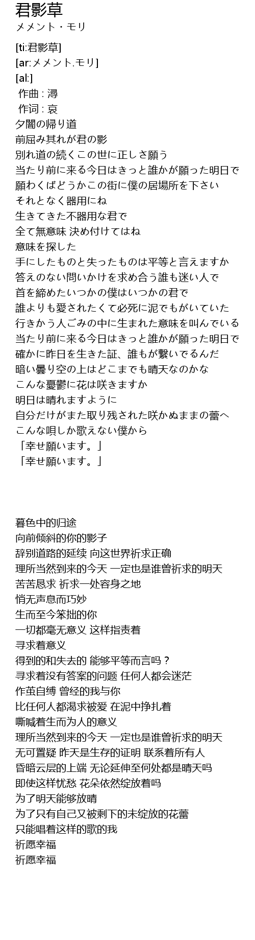 | [04:17.71] | 「幸せ願います。」 |