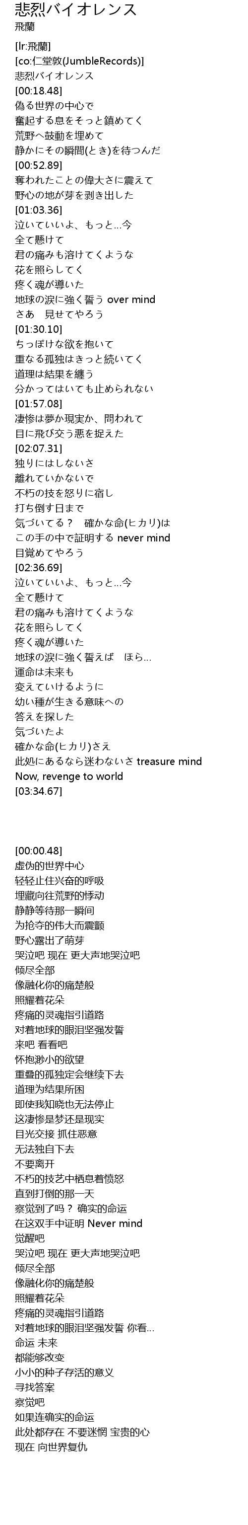 | [00:00.48] | 悲烈バイオレンス |