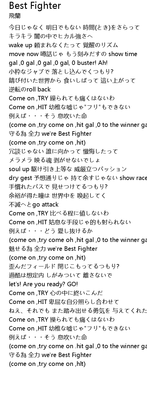 | (come on ,try come oh ,hit gal ,0 to the winner gate) | |