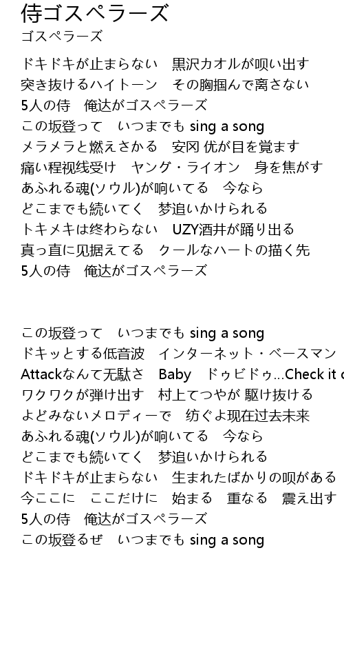 | この坂登るぜ いつまでも sing a song |