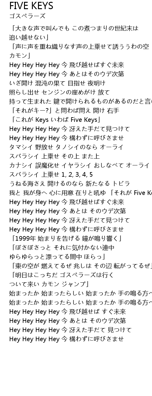 | wǒ wǒ shēn xīn yòng yì zài hǒu Five Keys | |