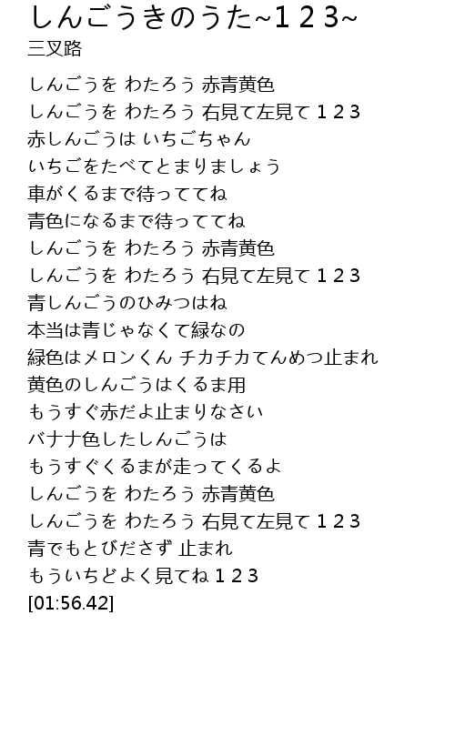 しんごうを わたろう 右見て左見て 1 2 3 |