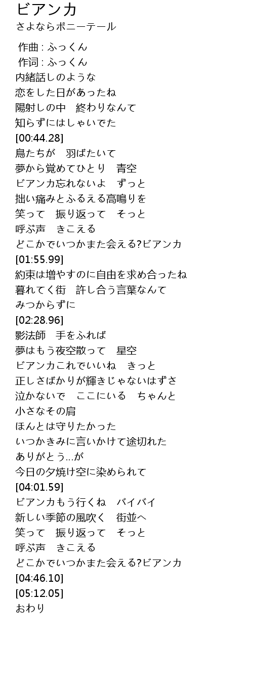 | [01:44.59] | どこかでいつかまた会える?ビアンカ |