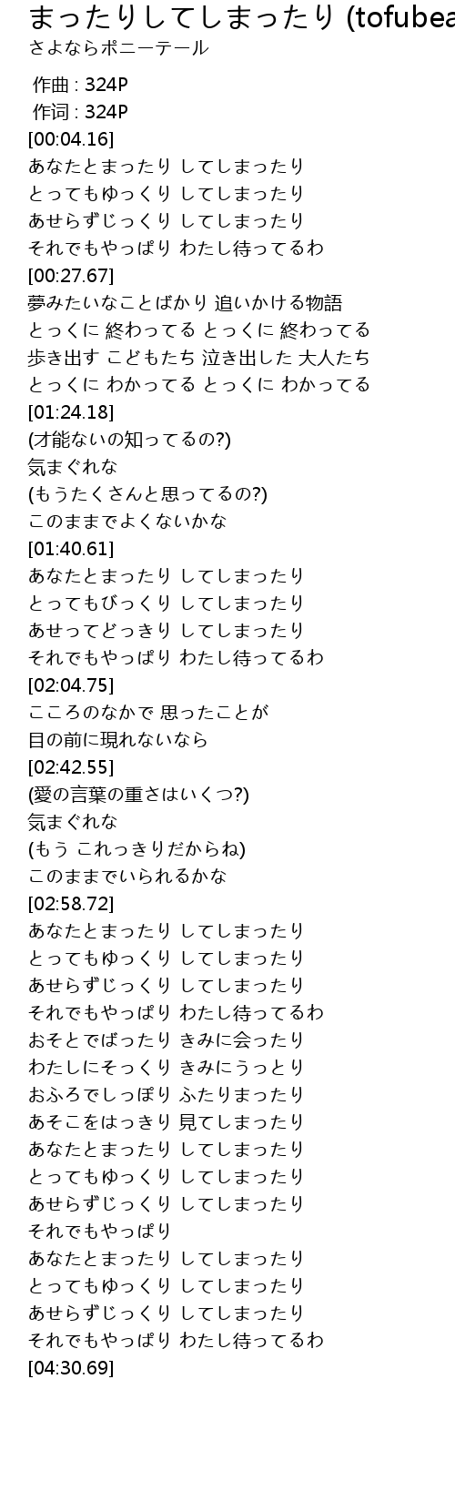 | [04:00.19] | あなたとまったり してしまったり |