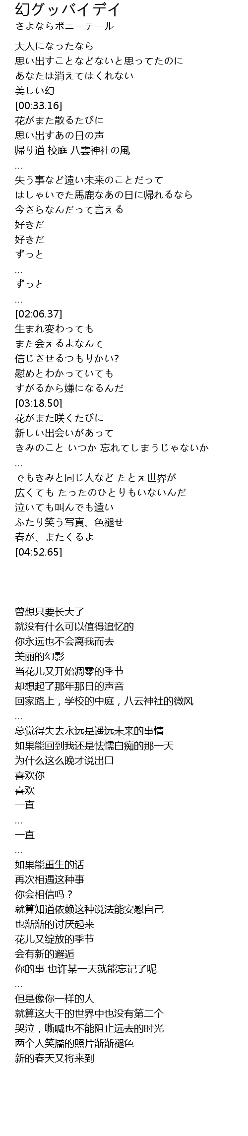 | [01:14.97] | はしゃいでた馬鹿なあの日に帰れるなら |