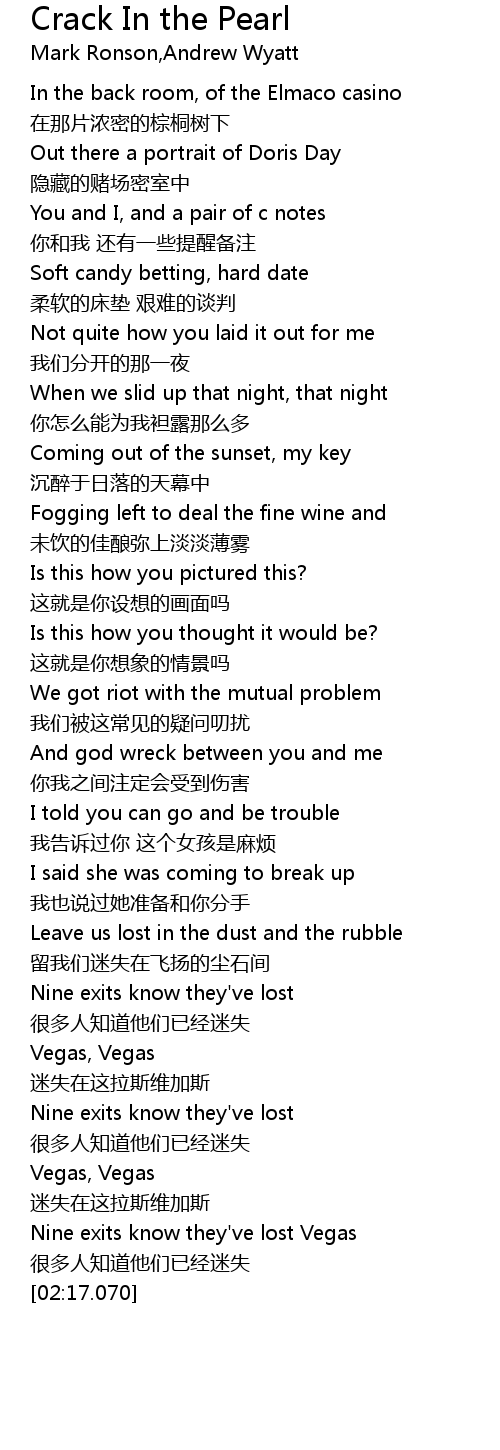 | [02:10.590] | Nine exits know they' ve lost Vegas |
