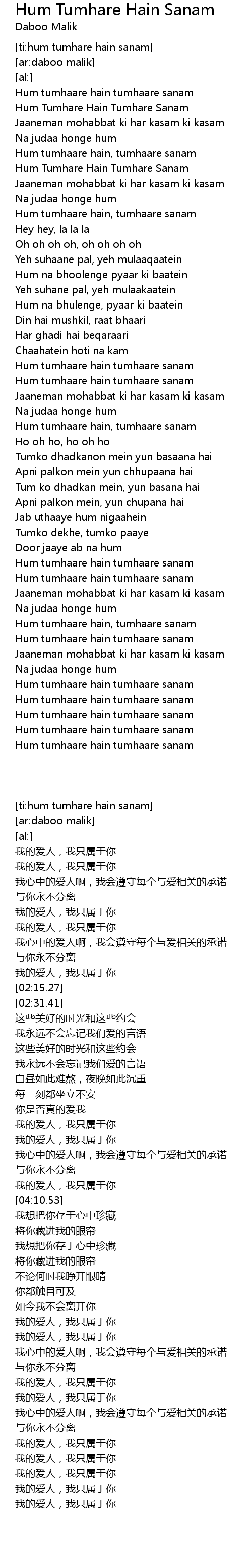 [ti:hum tumhare hain sanam] |