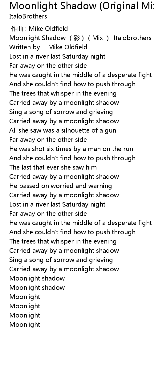 | [00:00.00] | Moonlight Shadow yǐng Mix Italobrothers |