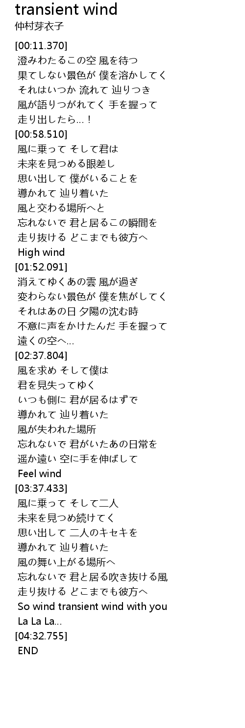 | [04:07.021] | 走り抜ける どこまでも彼方へ |