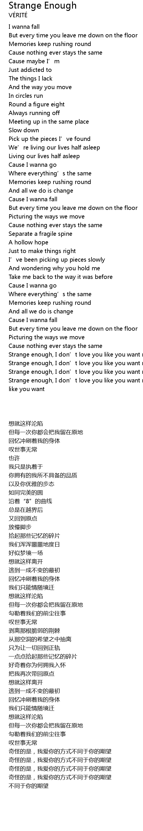 | [02:34.58] | Strange enough, I don' t love you like you want me to. |