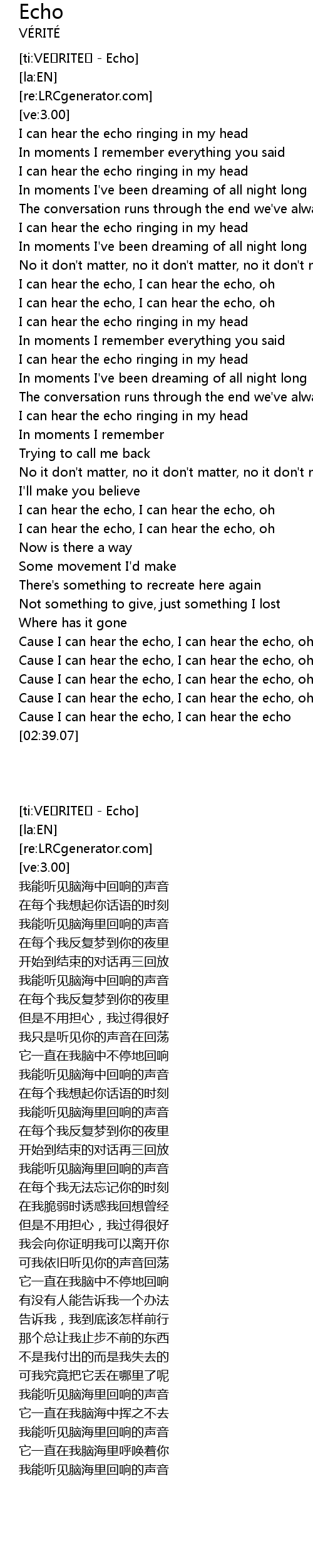 | [ti:VÉRITÉ - Echo] | |