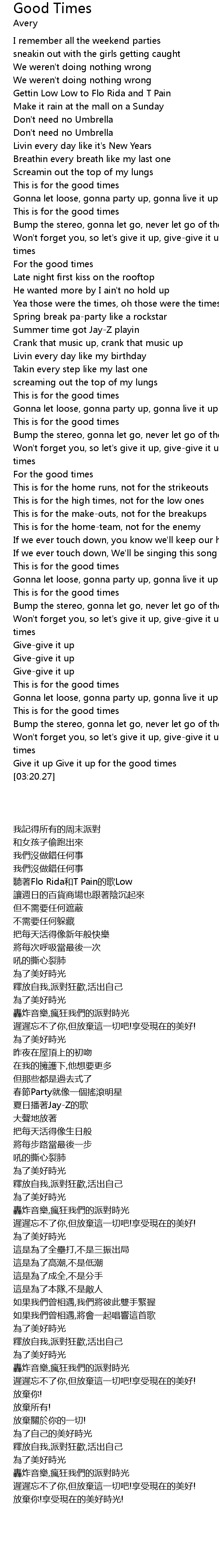 Give it up Give it up for the good times |