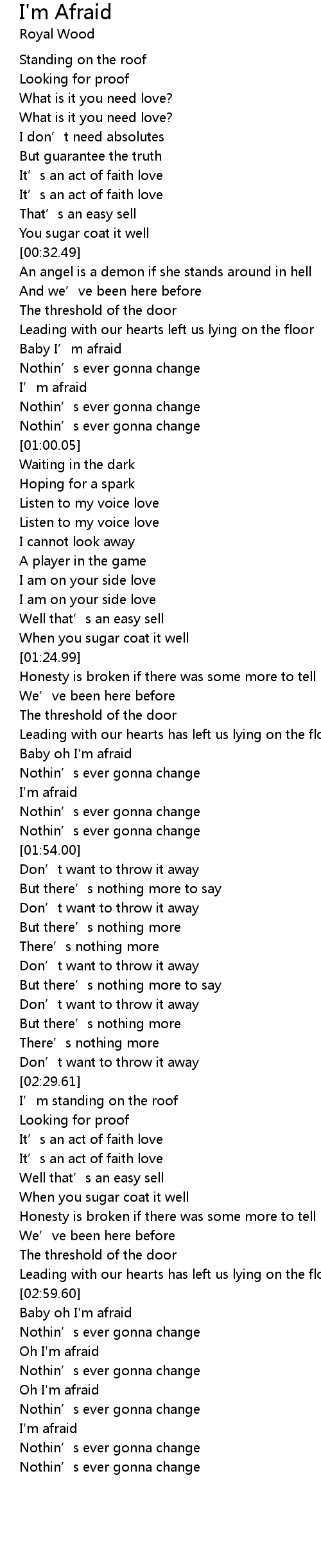 | [00:43.35] | Baby I’m afraid |