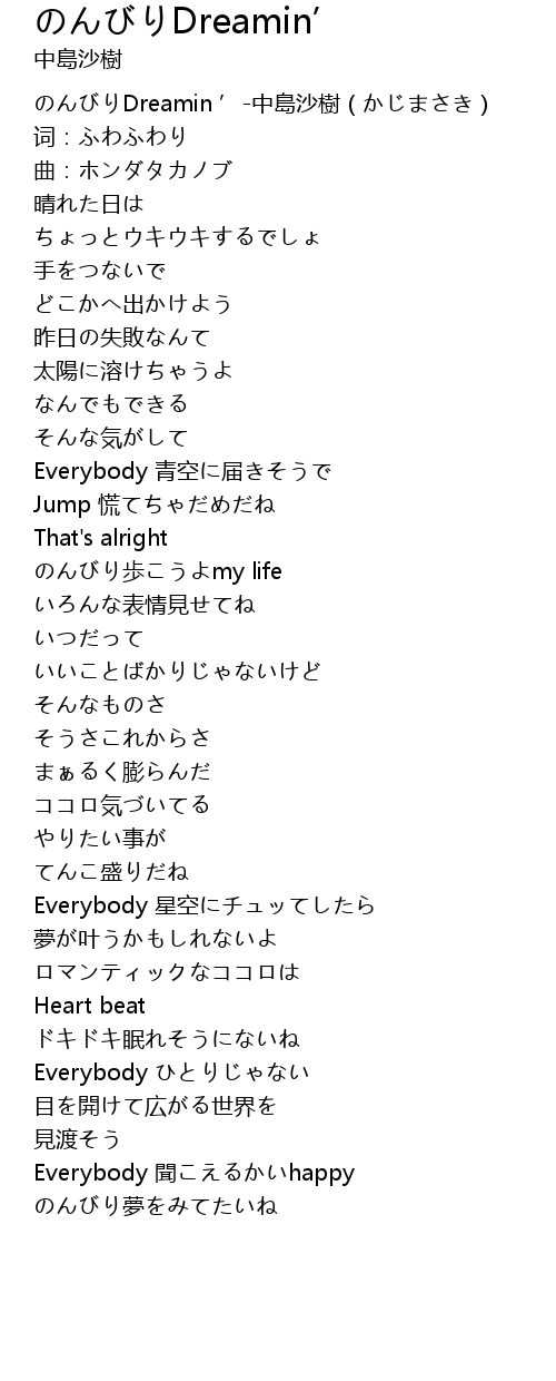 | [00:00.00] | のんびりDreamin ’-中島沙樹(かじまさき) |