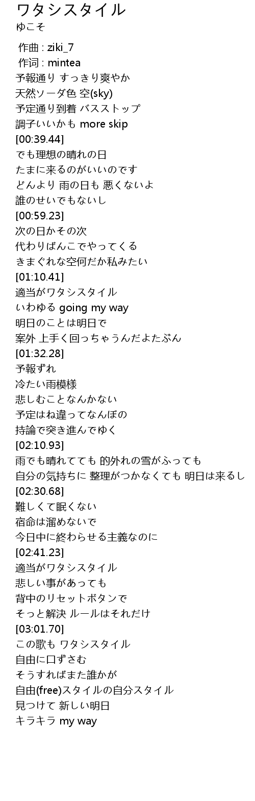 | [03:17.17] | 自由(free)スタイルの自分スタイル |