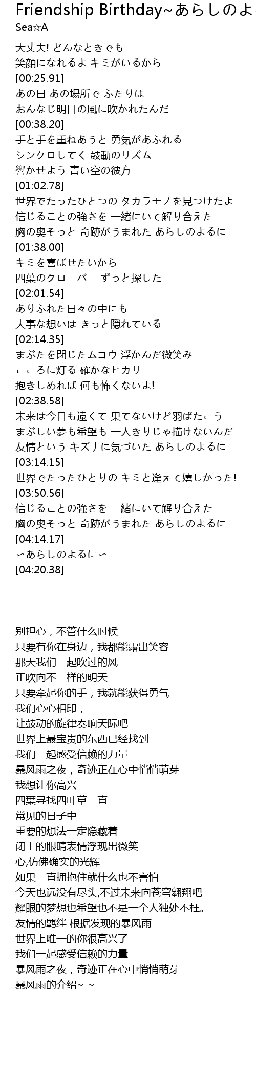 | [04:01.42] | 胸の奥そっと 奇跡がうまれた あらしのよるに |