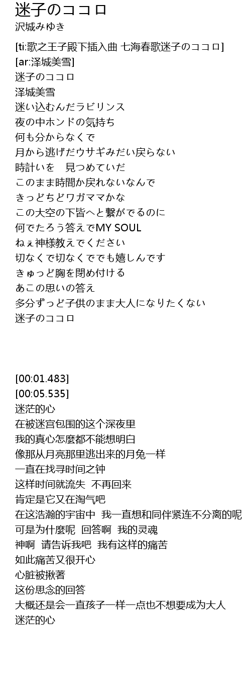 | [ti:歌之王子殿下插入曲 七海春歌迷子のココロ] | |