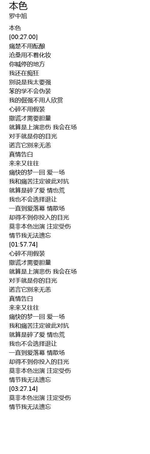 | [03:34.34] | 莫非本色出演 注定受伤 |