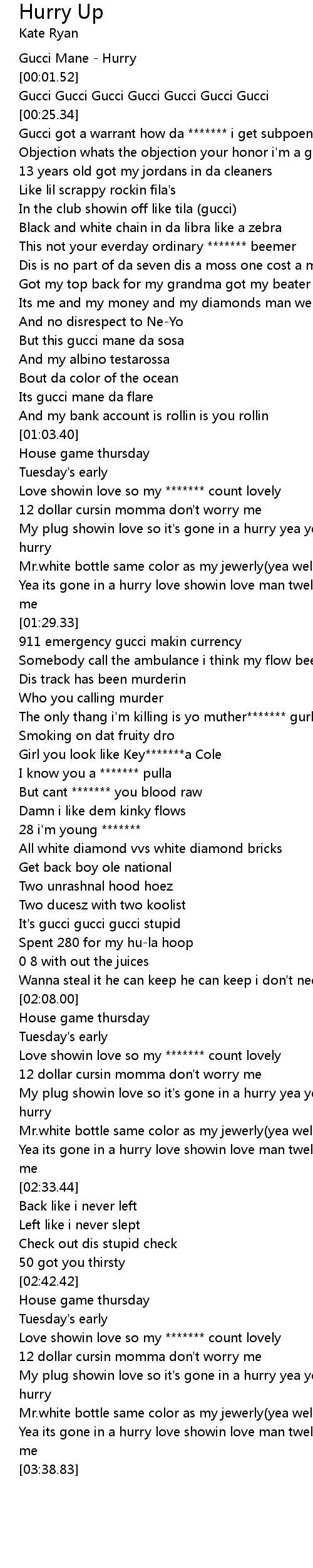 | [00:00.52] | Gucci Mane - Hurry |