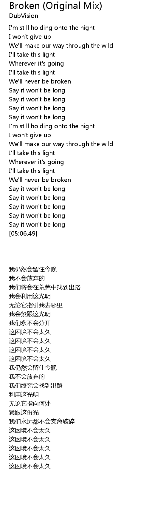 | [03:59.62] | We'll never be broken |